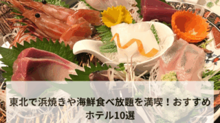 東北 東北で浜焼きや海鮮食べ放題を満喫!おすすめホテル10選 東北旅行といえば、やっぱり温泉や絶景、そして新鮮な海の幸ですよね。その中でも「浜焼き食べ放題」や「海鮮ビュッフェ」を楽しめる宿は、旅の醍醐味をぐっと高めてくれる存在です。「浜焼きをお腹いっぱい味わいたい」「温泉も景色もグルメも全部楽しみたい... 東北